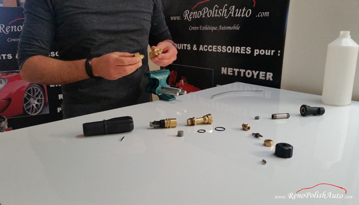 Comment démonter une foam lancePourquoi démonter une foam lance ?Au fur et à mesure des lavages, une foam lance peut s'encrasser. L'eau calcaire peut également être une cause de dysfonctionnement de la foam lance. Comme les trous de la foam lance sont très petits, il suffit d'un grain de sable pour boucher un orifice et rendre la foam lance inutilisable. Avec un démontage minutieux de la foam lance. Nous pouvons nettoyer tous les orifices du canon à mousse et ainsi retrouver un aspect neuf comme au premier jour. Comment démonter la foam lanceMéthode d'utilisation: